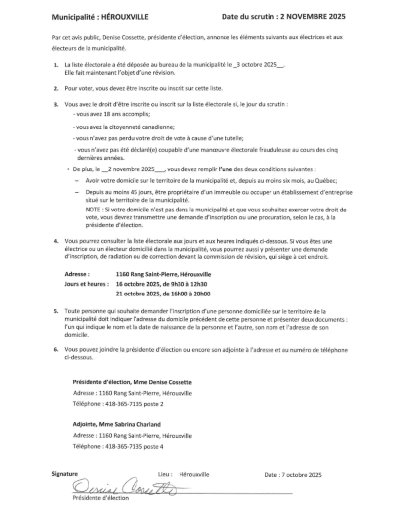 Accueil » AVIS – ÉLECTION MUNICIPALE – RÉVISION DE LA LISTE ÉLECTORALE